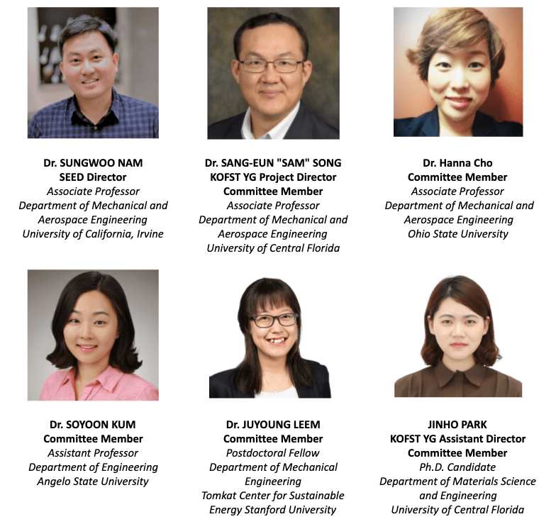 The SEED 2021 featured three plenary talks given by distinguished scholars including Dr. Yongho Sohn, Dr. Chang-Jin “CJ” Kim, and Dr. Young-Kee Kim. Two distinguished guests, Dr. Woo Il Lee, President of the Korean Federation of Science & Technology Societies (KOFST) and Dr. Hee Sun Chung, President of the Korea Federation of Women’s Science & Technology Association (KOFWST), joined the SEED 2021 dinner and the plenary talk by Dr. Young-Kee Kim.
