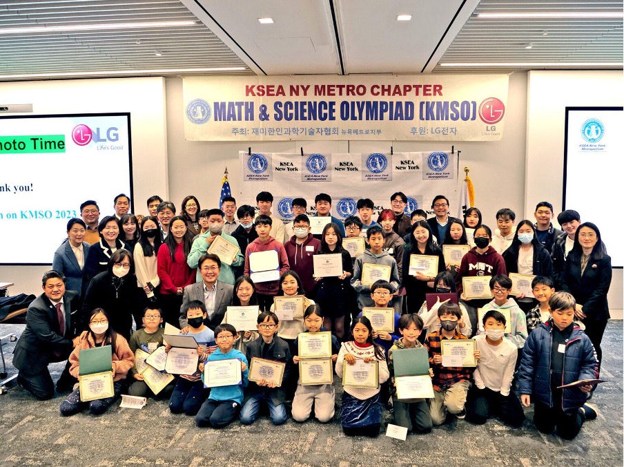 The KMSO 2022 Award ceremony was held on Saturday, December 10, 2022, in KSEA New York Metropolitan Chapter. In particular, it was held at the LG Electronics New Campus with the support of LG Electronics USA for the first time. More than 50 students, 70 parents, and 30 KSEA New York Metropolitan Chapter volunteers attended and enjoyed the ceremony. Mr. Chulho Huh, the Vice President of Corporate Marketing LG Electronics USA, and Dr. Chin Ok Lee, the former KSEA 18th President, professor at Cornell University, and visiting and adjunct professor at Rockefeller University, gave congratulatory remarks. Sixty students were awarded merit awards (1st, 2nd, 3rd place, and Commendation), as well as special awards from LG Electronics, KSEA President, St. John’s University President, Consulate General of the Republic of Korea in New York, and Mayor of New York City.