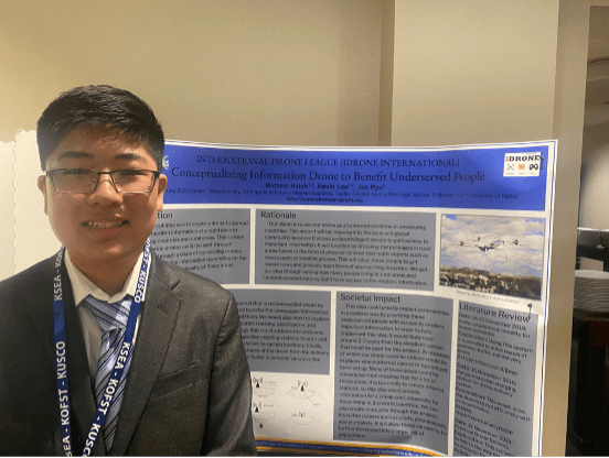 What truly set the iDrone camp apart was its ability to bridge the gap between classroom theory and real-world application. The secondary project was to use drones to theorize a way that they could be used to benefit the world. Exploring their capabilities and finding which was the most efficient to eventually come up with our idea was also something that made this camp memorable. From this poster, my teammate and I were given the opportunity to present at KSEA’s UKC 2023 convention in Dallas as the first high school poster presenters at this event. The opportunity to interact with industry professionals and fellow enthusiasts was a priceless extension of the iDrone experience.
