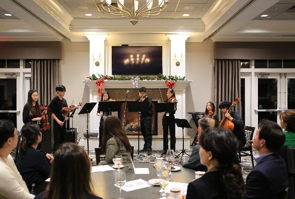 The KSEA NC Chapter prepared various segments to enrich the Gala dinner. Opening remarks were followed by a captivating string performance from the Eins Chamber Ensemble, whose melodious harmonies enchanted the attendees. Comprising a dedicated group of high school students from North Carolina,the Ensemble commits to performing voluntarily at a variety of locations, including foster homes and hospitals, aiming to deliver a positive influence through their music. The group showcased the musical prowess of Kelly Kim, Kevin Nam, Minchae Joo, Aiden Han, and Sunny Shin on the violin, with Brian Ahn and Chloe Kim on the cello. Their performance not only added elegance to the evening but also warmth, setting a festive tone akin to an early Christmas celebration. Their performance at the event was not only elegant but also heartwarming, infusing the night with an atmosphere reminiscent of an early Christmas celebration.