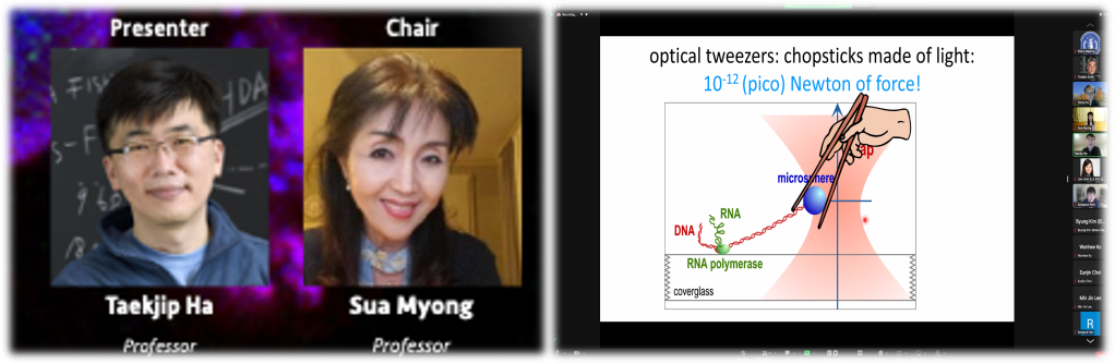 KSEA Webinar Series invited Dr. Taekjp Ha from Harvard Medical School and Howard Hughes Medical Institute for a virtual, scientific presentation entitle “From Single Molecules to Cellular Decision Making: Connecting the Scales Using Mechanical Force.” Organized and moderate by Dr. Sua Myong, from Harvard Medical School and Howard Hughes Medical Institute, the webinar attracted more than 120 registrants and participants, many of them becoming a new member of KSEA as graduate and undergraduate students. Dr. Ha presented the nature of decision making process by single molecules and cells through understanding of interaction via mechanical forces. He also highlighted and emphasized the efforts of his previous and current research assistants.