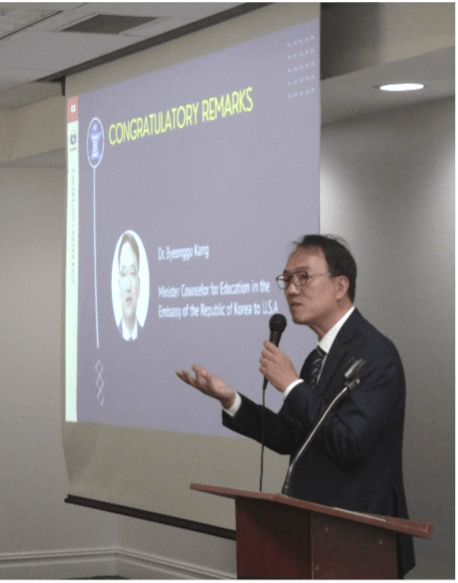 Dr. Byeonggu Kang, the Minister Counselor for Education at the Embassy of the Republic of Korea to the U.S.A., warmly welcomed the conference attendees. He highlighted the Embassy’s steadfast support for KAERA and its annual meetings, which include offering scholarships and research funds. Dr. Kang underscored the pivotal role of teacher education in shaping the future landscape of Korean public education. Following the presentations by the recipients of research grants and outstanding research awards, Dr. Kang expressed his appreciation for the impactful research, made possible through the provided funds. Dr. Kang pledged to further bolster KAERA’s endeavors.