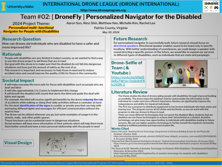 The 2024 Interstate Drone League (iDrone) youth camp took place virtually via Zoom from May 26th to 29th, 2024. This camp featured informal STEM learning modules, including drone building, coding, and poster presentation to experience fast-moving technologies, such as unmanned aerial systems (UAS), commonly known as drones. Throughout the camp, students had the opportunity to build their own drones from scratch, learn about motor control, and stabilize drones for safe and legal flight in the national airspace. Additionally, students collaborated in teams of 4 to 5, brainstorming how emerging technologies, such as drones, ground robots, Artificial Intelligence (AI), and machine learning (ML) can address real-world problems and exchange their knowledge and thoughts among peers for potential technical solutions.