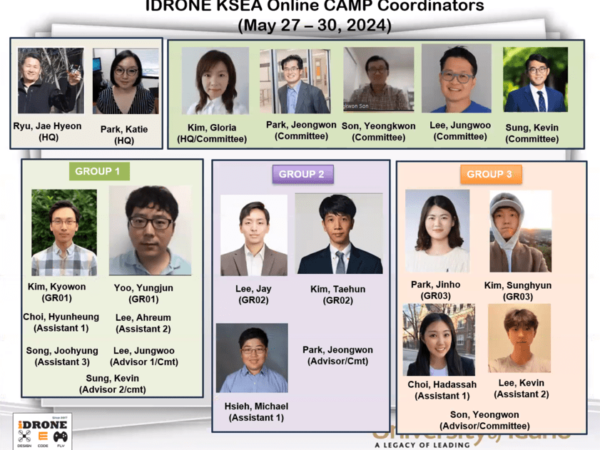 Special thanks to iDrone Coordinators (Alphabetic order by last name): Choi, Hadassah; Choi, Hyunheung; Hsieh, Michael; Kim, Gloria; Kim, Kyowon; Kim, Sunghyun; Kim, Taehun; Park, Jeongwon; Park, Jinho; Park, Katie; Sung, Kevin; Son, Yeongkwon; Song, Joohyung; Lee, Ahreum; Lee, Jay; Lee, Jungwoo; Lee, Kevin; Yoo, Yungjun.