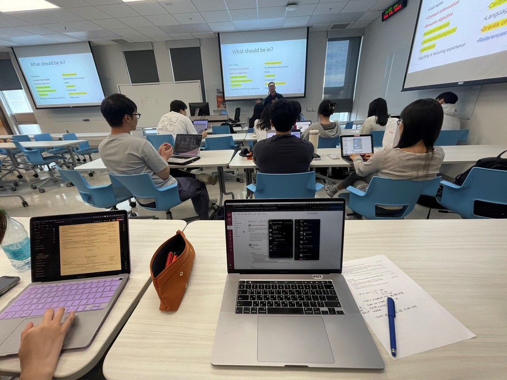 One of the seminar’s main focuses was the difference between undergraduate and graduate resumes or CVs. Dr. Kim explained that while undergraduate resumes should concisely prioritize academic achievements, skills, and work experience, graduate-level CVs should emphasize research experience, publications, and detailed project descriptions.
